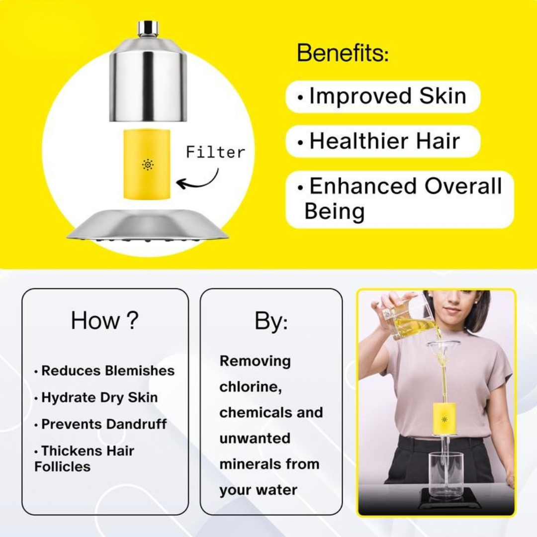 ✔ Clear Skin: Filters chlorine to prevent breakouts and dryness.